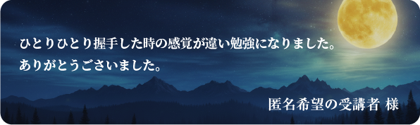 今回参加された皆様から、ご感想を頂きましたので一部ではございますが紹介させていただきます。